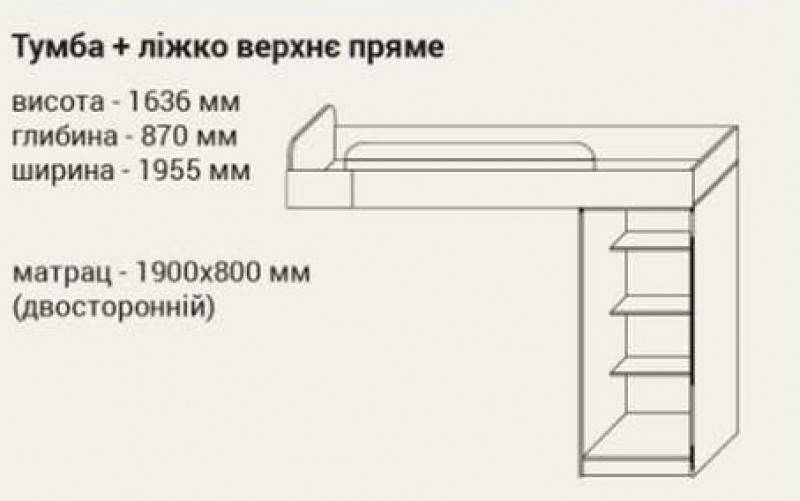 Кровать верхняя + тумба прямая ТВИНС