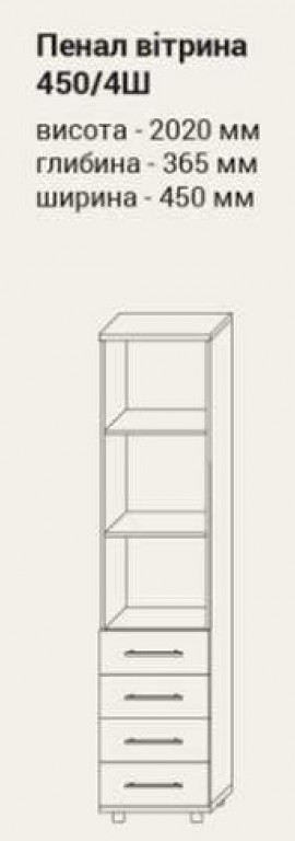 Пенал витрина 450/4Ш Дебют