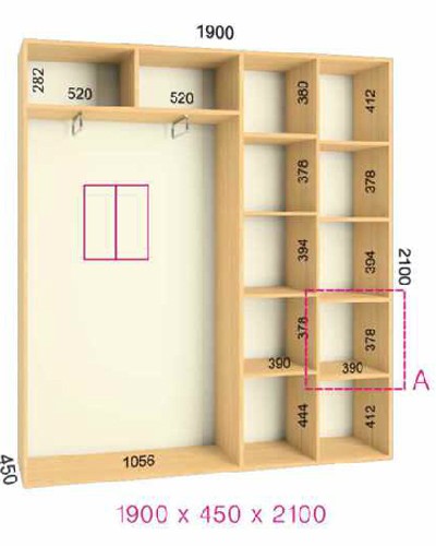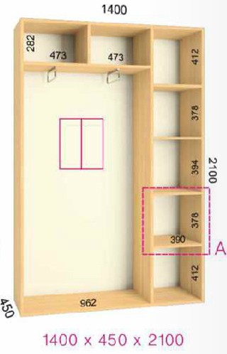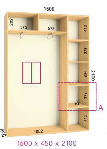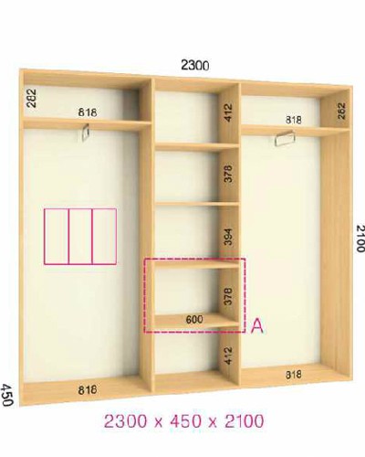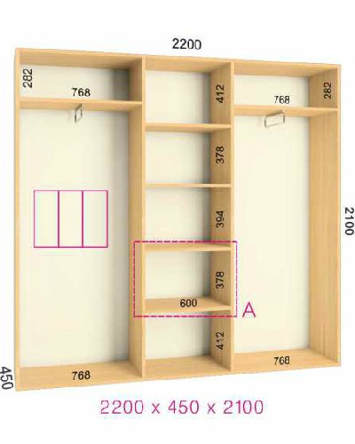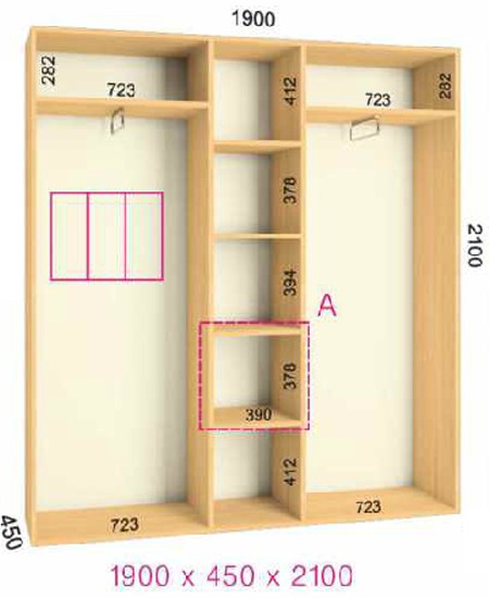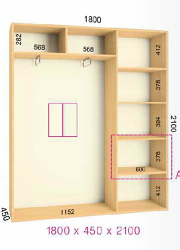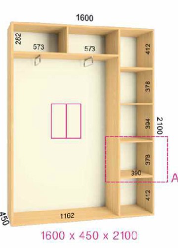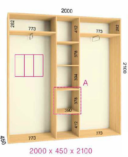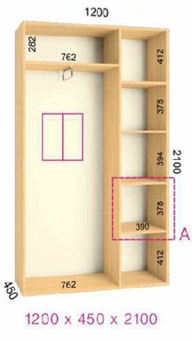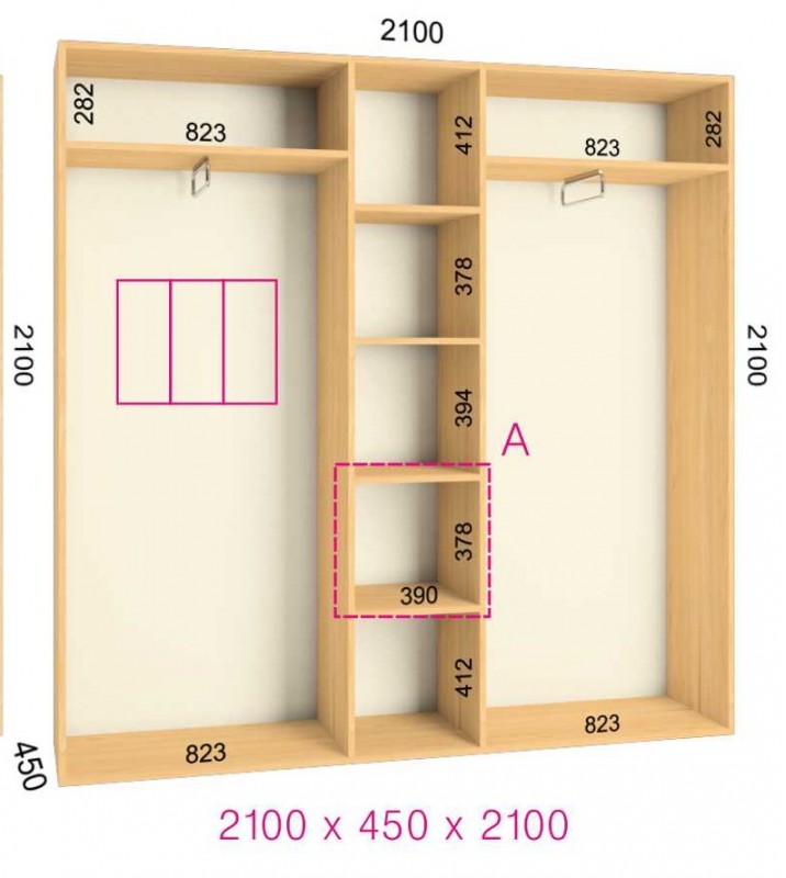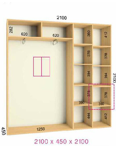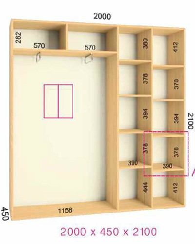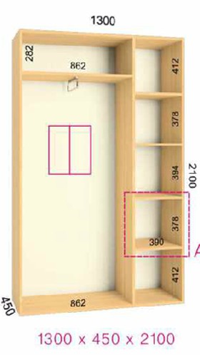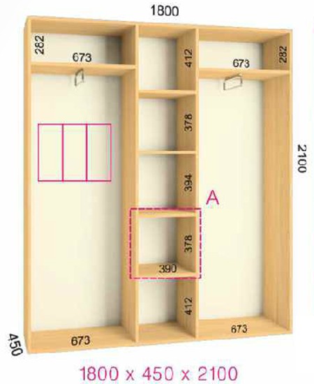 | Размер | Высота: 210 см, Глубина: 45 см, Ширина шкафа: на выбор |