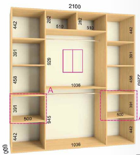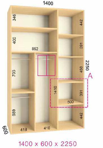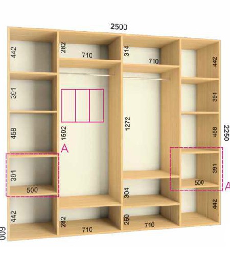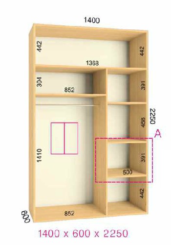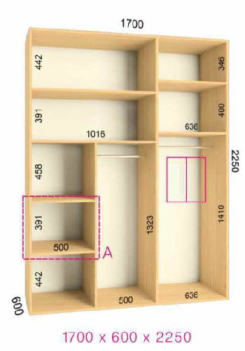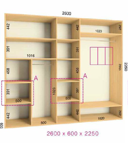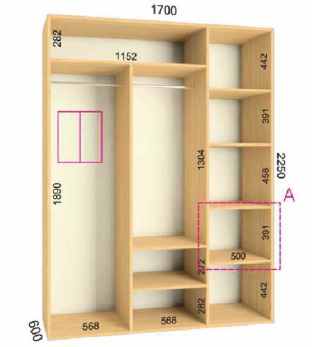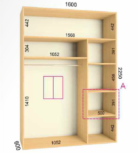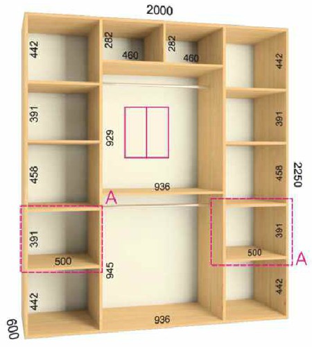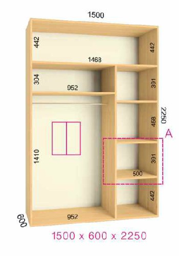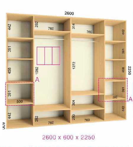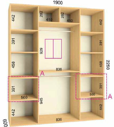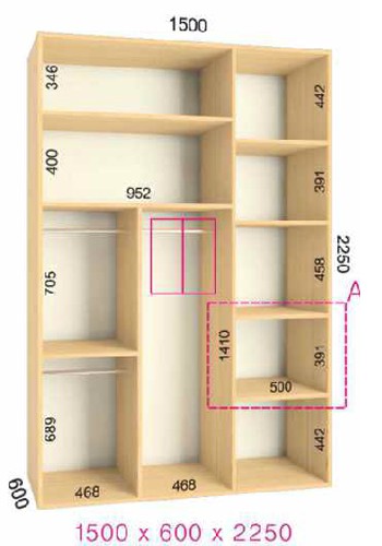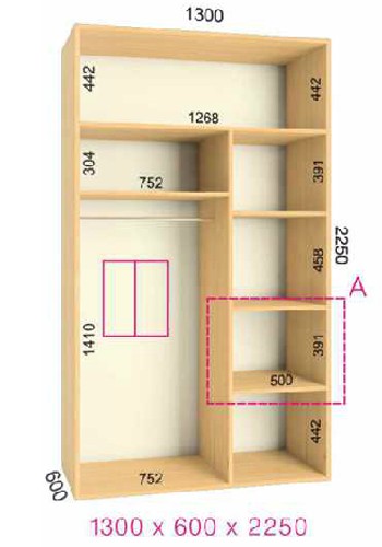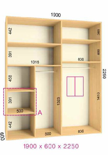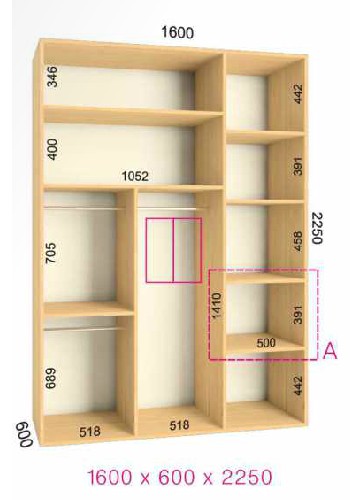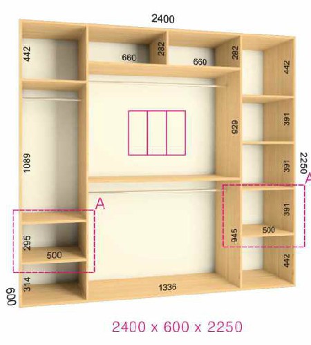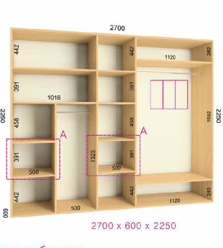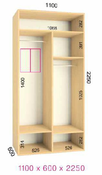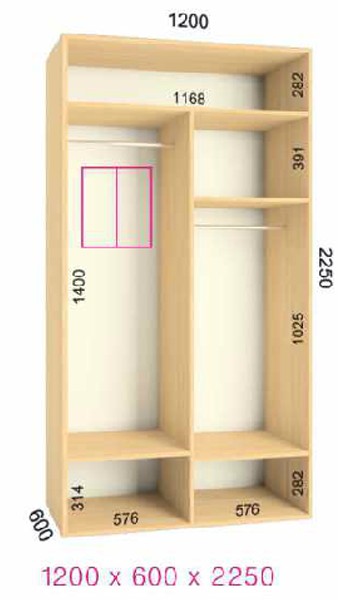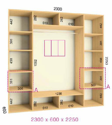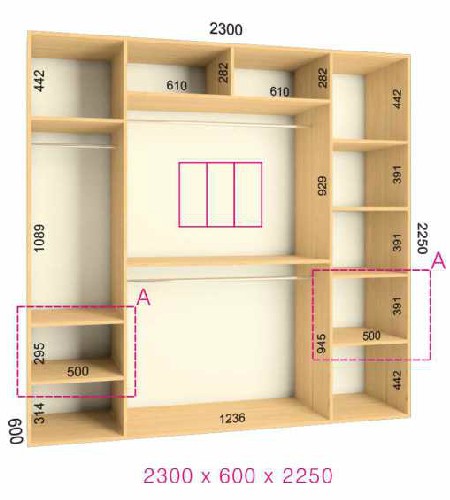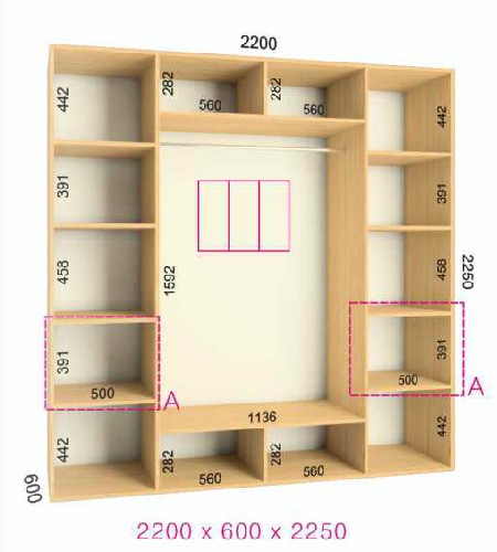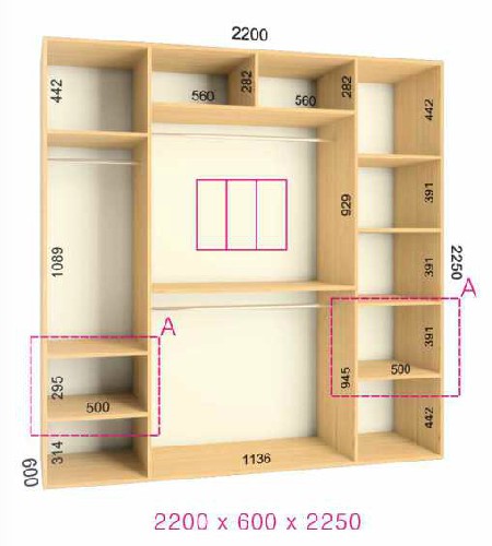 | Размер | Высота: 225 см, Глубина: 60 см, Ширина шкафа: на выбор |