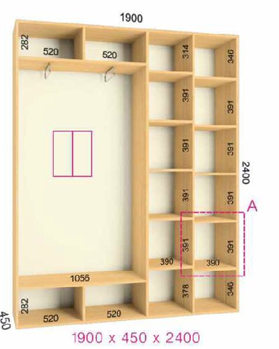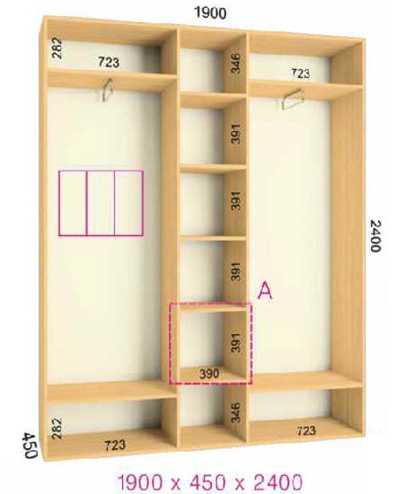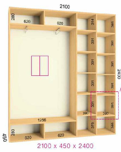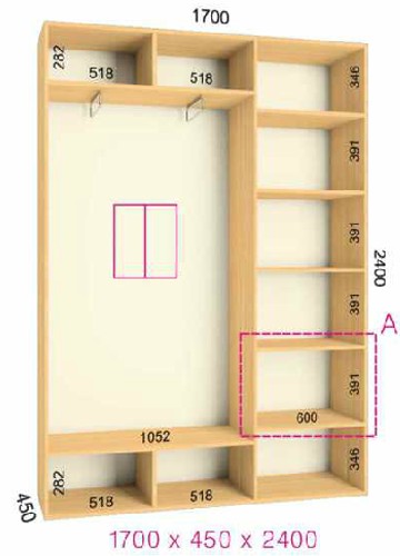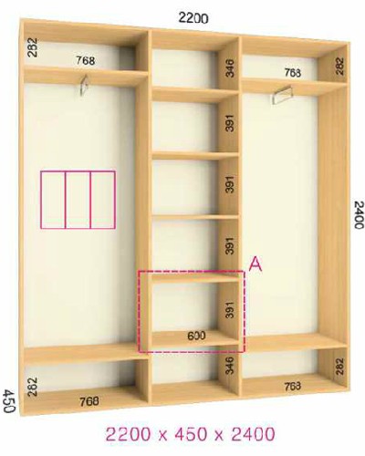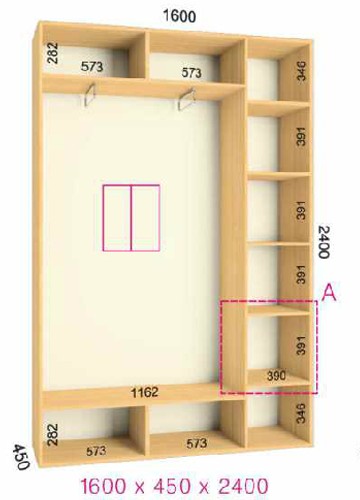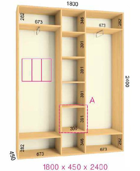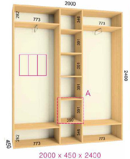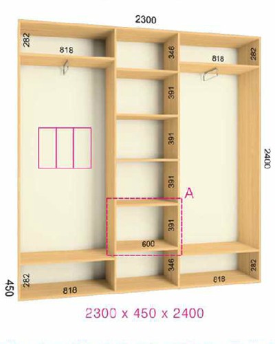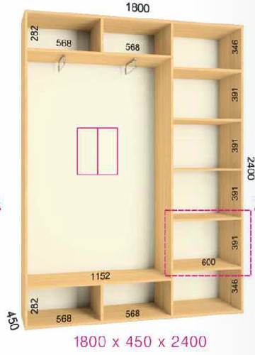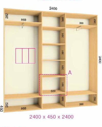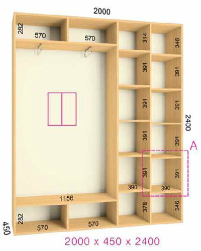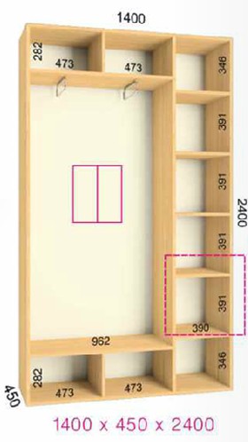 | Размер | Высота: 240 см, Глубина: 45 см, Ширина шкафа: на выбор |